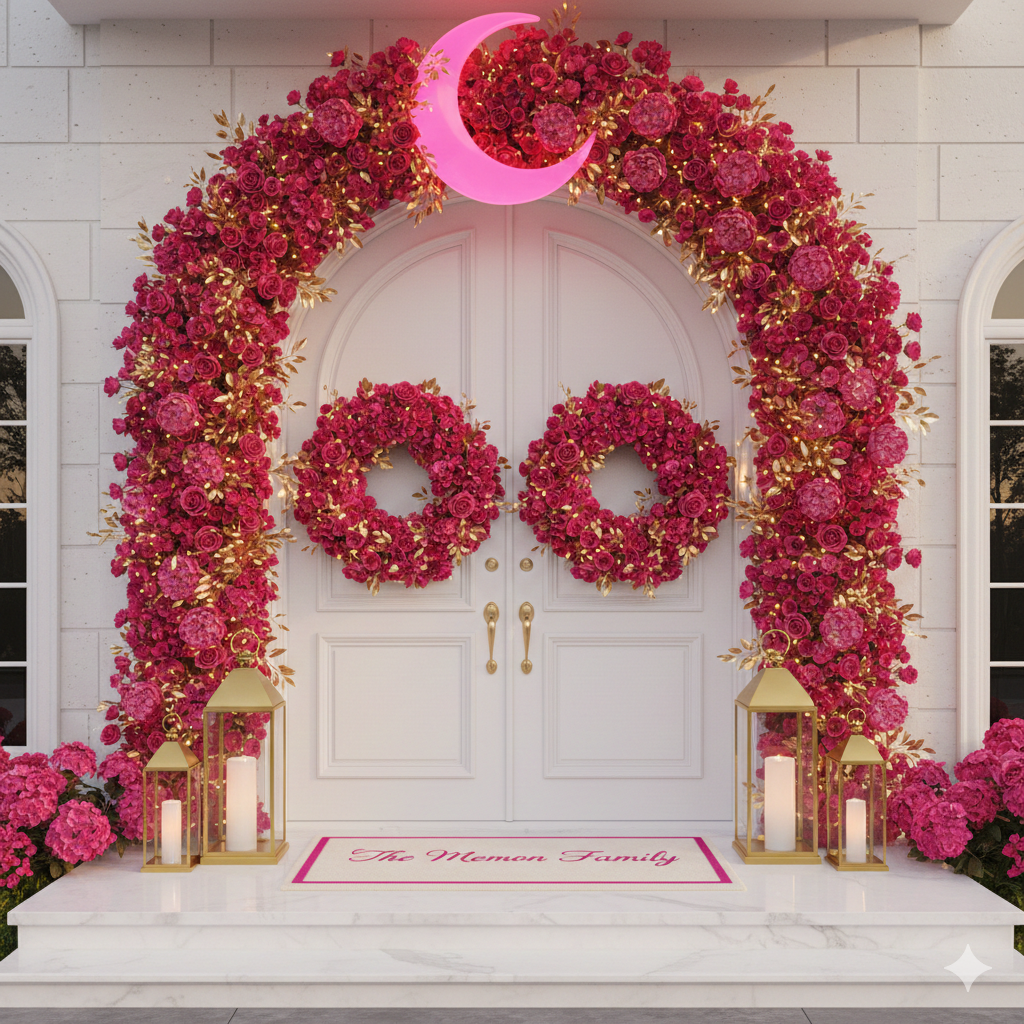 Our Ramadan installations transform your front door into a moment of warmth, beauty, and reflection. From elegant illuminated wreaths to complete front door transformations with garlands, flowerpots, and custom details, every element is thoughtfully designed and professionally installed. We handle everything—so you can focus on what matters most this Ramadan.